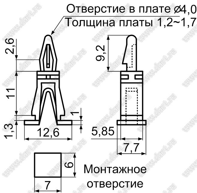 Каталог > Фурнитура для электронных устройств > Фиксаторы плат, стойки межплатные > Фиксаторы под квадратное отверстие > PCC серия > PCC-11