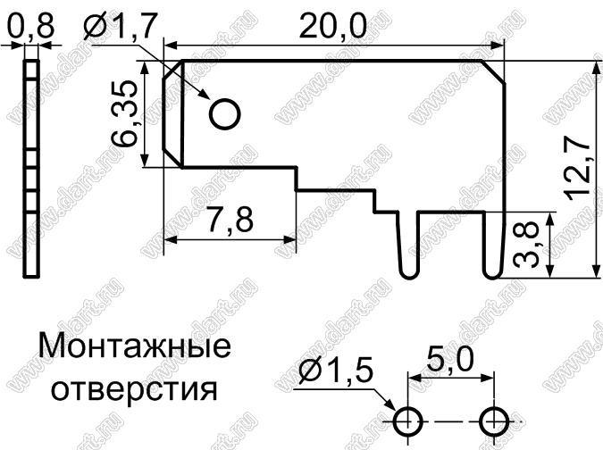 Каталог > Фурнитура для электронных устройств > Терминалы для печатных плат > Терминалы ножевые для пайки в печатную плату > PCFL250