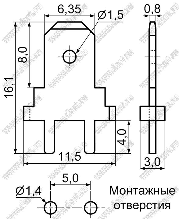 Каталог > Фурнитура для электронных устройств > Терминалы для печатных плат > Терминалы ножевые для пайки в печатную плату > PCR250