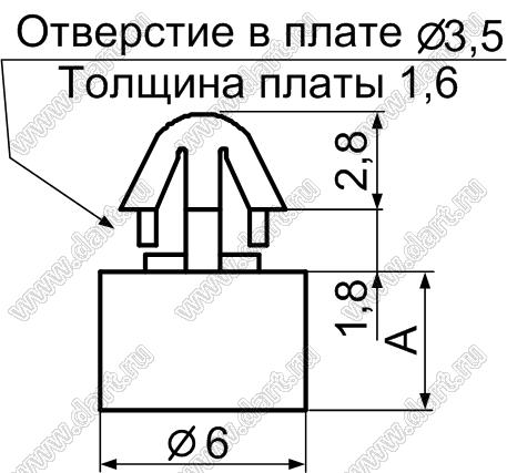 Каталог > Фурнитура для электронных устройств > Фиксаторы плат, стойки межплатные > Фиксаторы под круглое отверстие > Фиксаторы с защелкой в плату > PDC серия > PDC-3