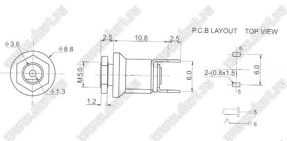 Каталог > Электронные компоненты, радиодетали > Разъёмы (соединители, переходники) > Разъемы вторичного (низковольтного) DC питания > DC гнезда (вторичного низковольтного питания) > DC-035-1,3