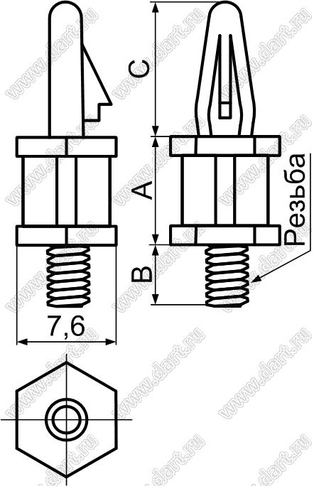 Каталог > Фурнитура для электронных устройств > Фиксаторы плат, стойки межплатные > Фиксаторы под круглое отверстие > Фиксаторы с защелкой в плату > SCB серия > SCB-6S
