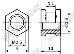Каталог > Фурнитура для электронных устройств > Крепеж металлический (метизы) и пластиковый > Втулки резьбовые закладные > Втулки резьбовые закладные шестигранные со сквозным отверстием по DIN 16903-1991 > BLHE-025100