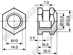 Каталог > Фурнитура для электронных устройств > Крепеж металлический (метизы) и пластиковый > Втулки резьбовые закладные > Втулки резьбовые закладные шестигранные с глухим отверстием по DIN 16903-1991 > BLHB-100200
