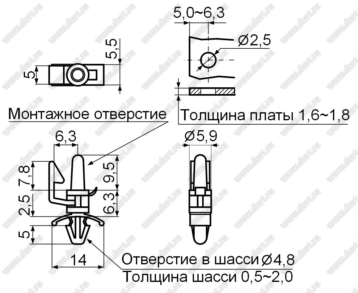 Каталог > Фурнитура для электронных устройств > Фиксаторы плат, стойки межплатные > Фиксаторы под круглое отверстие > Фиксаторы с двумя защелками > ULCB серия > ULCB-9
