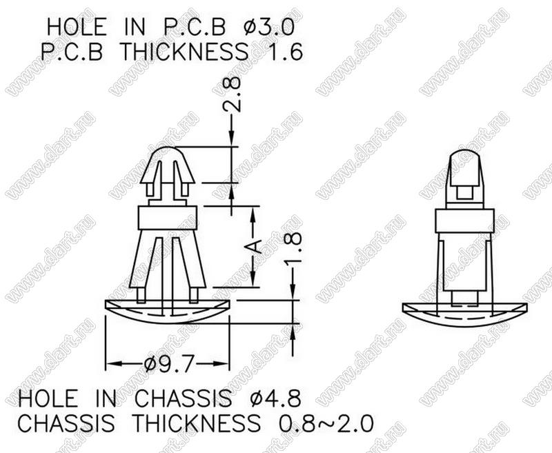 Каталог > Фурнитура для электронных устройств > Фиксаторы плат, стойки межплатные > Фиксаторы под круглое отверстие > Фиксаторы с двумя защелками > RCC серия > RCC-5