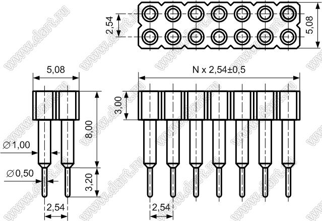 Каталог > Электронные компоненты, радиодетали > Разъёмы (соединители, переходники) > Разъемы плата-плата (межплатные) > Разъемы цанговые > шаг 2,54 мм (разъемы межплатные штыревые и гнезда для них) > DS1002-07-2xXXyy13 серия > DS1002-07-2x181313