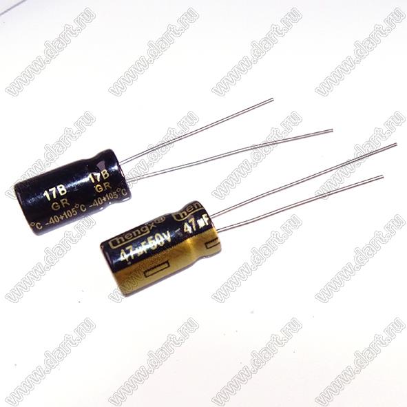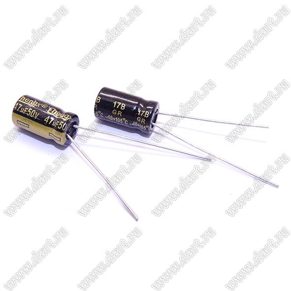 Каталог > Электронные компоненты, радиодетали > Конденсаторы > ECAP - конденсаторы алюминиевые электролитические радиальные > GR/GLR/TN серия > ECAP 47uF/50V 0611 105C GR (GR476M050E11RR0HP0)