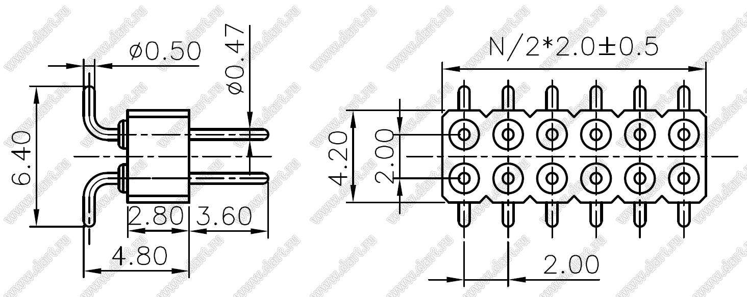 Каталог > Электронные компоненты, радиодетали > Разъёмы (соединители, переходники) > Разъемы плата-плата (межплатные) > Разъемы цанговые > шаг 2,00 мм (разъемы межплатные штыревые и гнезда для них) > DS1004-01-2xXXS1B (PDLM2SMT-XX) серия > DS1004-01-2xS1B (PDLM2SMT-22)