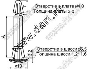 Каталог > Фурнитура для электронных устройств > Фиксаторы плат, стойки межплатные > Фиксаторы под круглое отверстие > Фиксаторы с двумя защелками > RBT серия > RBT-16L