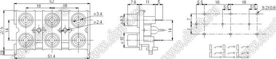 Каталог > Электронные компоненты, радиодетали > Разъёмы (соединители, переходники) > Разъемы аудио-видео > Разъемы RCA («тюльпан») > гнезда RCA > Блоки по шесть гнезд серии RCA "тюльпан" > RCA-608 (AV6-9)