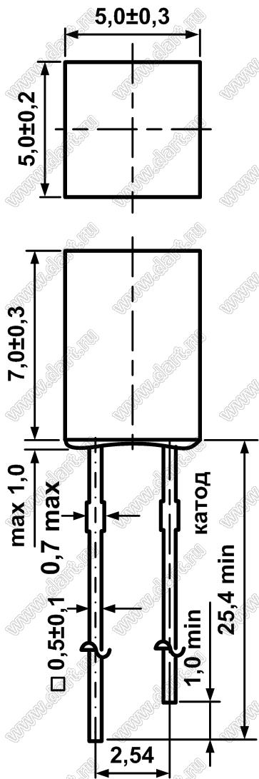 Каталог > Оптоэлектроника и индикация > Светодиоды и изделия на светодиодах > Светодиоды выводные > Светодиоды квадратные 5x5 мм > QDX-557UB