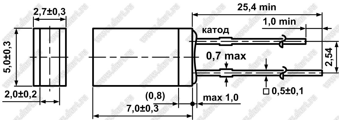 Каталог > Оптоэлектроника и индикация > Светодиоды и изделия на светодиодах > Светодиоды выводные > Светодиоды прямоугольные 2x5x7 мм > DR2N-135