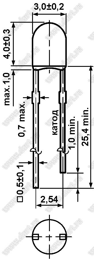 Каталог > Оптоэлектроника и индикация > Светодиоды и изделия на светодиодах > Светодиоды выводные > Светодиоды круглые 3 мм > DB3N-145