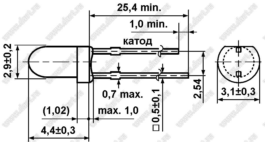 Каталог > Оптоэлектроника и индикация > Светодиоды и изделия на светодиодах > Светодиоды выводные > Светодиоды круглые 3 мм > DB3J-443BG