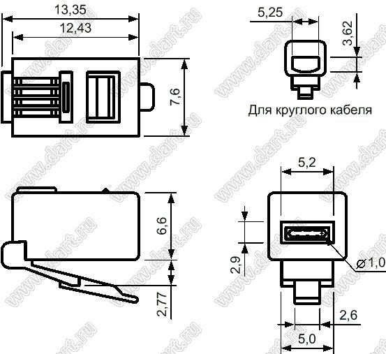 Каталог > Электронные компоненты, радиодетали > Разъёмы (соединители, переходники) > Разъемы RJ телекоммуникационные (телефонные, LAN, RJ-45) > 7001-4P4C (TP4P4C, DS1121-0, RJ-9)-PLUG