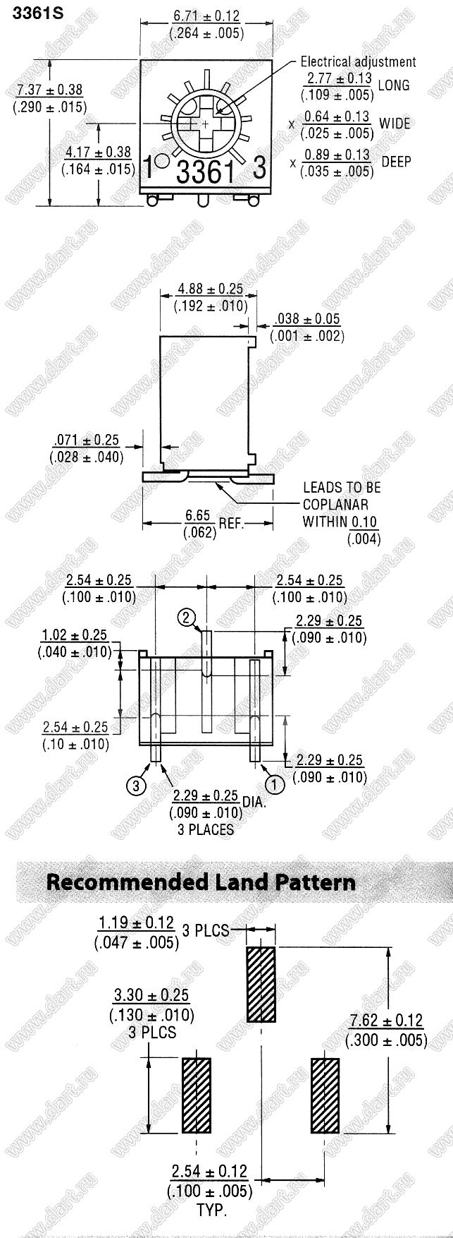 Каталог > Электронные компоненты, радиодетали > Резисторы > Резисторы подстроечные > Резисторы подстроечные SMD (для поверхностного монтажа) > 3361 серия > 3361S-1-204GLF