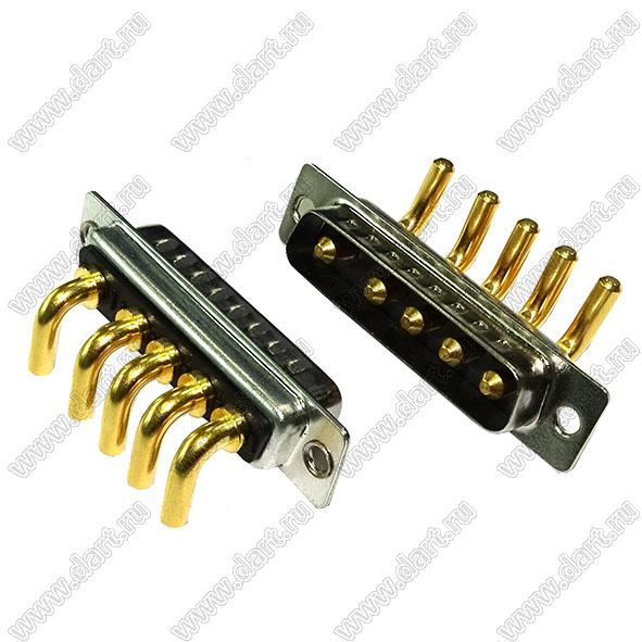 Вилка угловая D-SUB с силовыми контактами для пайки в плату; 5-конт.; без гаек