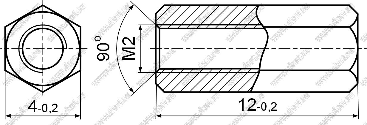 Каталог > Фурнитура для электронных устройств > Крепеж металлический (метизы) и пластиковый > Стойки резьбовые > Стойки резьбовые металлические > PCHSS серия > PCHSS2.0-xx (SW=4.0) серия > PCHSS2-12 (4.0)