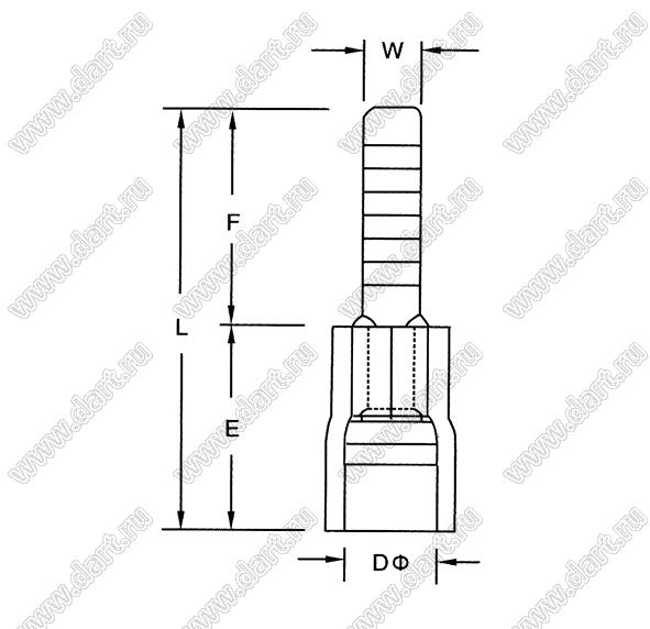 Каталог > Фурнитура для электронных устройств > Наконечники кабельные и клеммы FASTON россыпью в пакетах > Наконечники кабельные изолированные россыпью в пакетах > DBVN-D серия: наконечники кабельные изолированные штыревые плоские > DBVN2-10D
