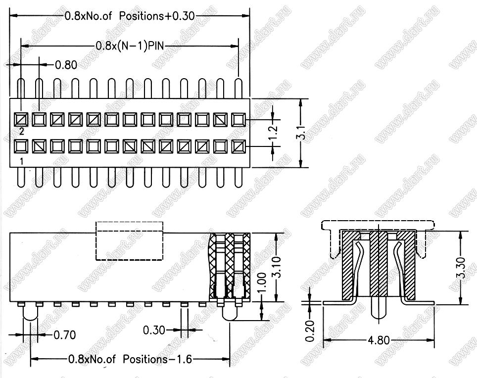 Каталог > Электронные компоненты, радиодетали > Разъёмы (соединители, переходники) > Разъемы плата-плата (межплатные) > шаг 0,80x1,20 мм (разъемы межплатные штыревые и гнезда для них) > 2731SM-02xxCG серия > 2731SM-0216CG