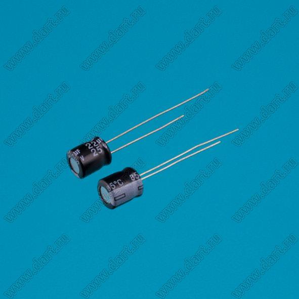 Каталог > Электронные компоненты, радиодетали > Конденсаторы > ECAP - конденсаторы алюминиевые электролитические радиальные > MHR серия > ECAP 22uF/25V 0607 105C MHR