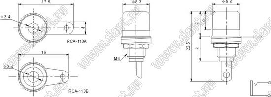 Каталог > Электронные компоненты, радиодетали > Разъёмы (соединители, переходники) > Разъемы аудио-видео > Разъемы RCA («тюльпан») > гнезда RCA > Одиночные гнезда серии RCA "тюльпан" > RCA-113A