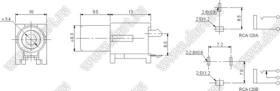 Каталог > Электронные компоненты, радиодетали > Разъёмы (соединители, переходники) > Разъемы аудио-видео > Разъемы RCA («тюльпан») > гнезда RCA > Одиночные гнезда серии RCA "тюльпан" > RCA-120
