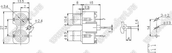 Каталог > Электронные компоненты, радиодетали > Разъёмы (соединители, переходники) > Разъемы аудио-видео > Разъемы RCA («тюльпан») > гнезда RCA > Блоки по два гнезда серии RCA "тюльпан" > RCA-206C