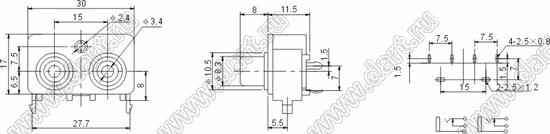 Каталог > Электронные компоненты, радиодетали > Разъёмы (соединители, переходники) > Разъемы аудио-видео > Разъемы RCA («тюльпан») > гнезда RCA > Блоки по два гнезда серии RCA "тюльпан" > RCA-206D