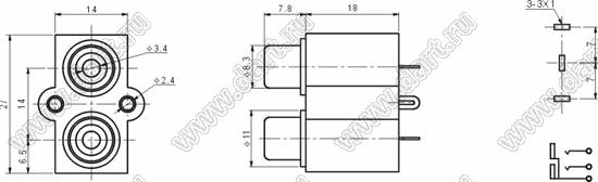Каталог > Электронные компоненты, радиодетали > Разъёмы (соединители, переходники) > Разъемы аудио-видео > Разъемы RCA («тюльпан») > гнезда RCA > Блоки по два гнезда серии RCA "тюльпан" > RCA-207B-FB