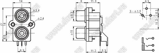 Каталог > Электронные компоненты, радиодетали > Разъёмы (соединители, переходники) > Разъемы аудио-видео > Разъемы RCA («тюльпан») > гнезда RCA > Блоки по два гнезда серии RCA "тюльпан" > RCA-207P