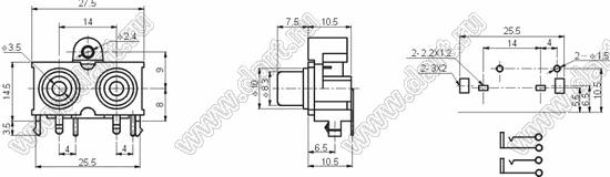 Каталог > Электронные компоненты, радиодетали > Разъёмы (соединители, переходники) > Разъемы аудио-видео > Разъемы RCA («тюльпан») > гнезда RCA > Блоки по два гнезда серии RCA "тюльпан" > RCA-210