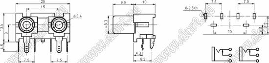 Каталог > Электронные компоненты, радиодетали > Разъёмы (соединители, переходники) > Разъемы аудио-видео > Разъемы RCA («тюльпан») > гнезда RCA > Блоки по два гнезда серии RCA "тюльпан" > RCA-215D