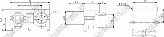 Каталог > Электронные компоненты, радиодетали > Разъёмы (соединители, переходники) > Разъемы аудио-видео > Разъемы RCA («тюльпан») > гнезда RCA > Блоки по два гнезда серии RCA "тюльпан" > RCA-216A