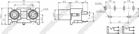 Каталог > Электронные компоненты, радиодетали > Разъёмы (соединители, переходники) > Разъемы аудио-видео > Разъемы RCA («тюльпан») > гнезда RCA > Блоки по два гнезда серии RCA "тюльпан" > RCA-216D