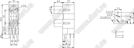 Каталог > Электронные компоненты, радиодетали > Разъёмы (соединители, переходники) > Разъемы аудио-видео > Разъемы RCA («тюльпан») > гнезда RCA > Блоки по два гнезда серии RCA "тюльпан" > RCA-222