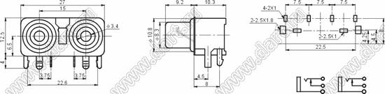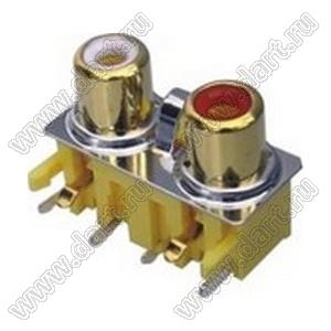 Каталог > Электронные компоненты, радиодетали > Разъёмы (соединители, переходники) > Разъемы аудио-видео > Разъемы RCA («тюльпан») > гнезда RCA > Блоки по два гнезда серии RCA "тюльпан" > RCA-225D-PD