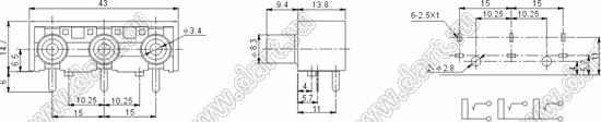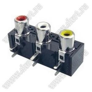 Каталог > Электронные компоненты, радиодетали > Разъёмы (соединители, переходники) > Разъемы аудио-видео > Разъемы RCA («тюльпан») > гнезда RCA > Блоки по три гнезда серии RCA "тюльпан" > RCA-302