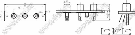 Каталог > Электронные компоненты, радиодетали > Разъёмы (соединители, переходники) > Разъемы аудио-видео > Разъемы RCA («тюльпан») > гнезда RCA > Блоки по три гнезда серии RCA "тюльпан" > RCA-303