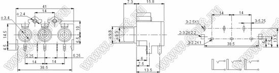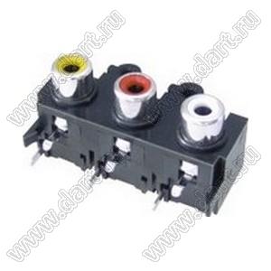 Каталог > Электронные компоненты, радиодетали > Разъёмы (соединители, переходники) > Разъемы аудио-видео > Разъемы RCA («тюльпан») > гнезда RCA > Блоки по три гнезда серии RCA "тюльпан" > RCA-304