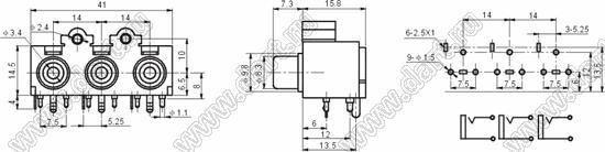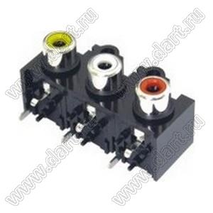 Каталог > Электронные компоненты, радиодетали > Разъёмы (соединители, переходники) > Разъемы аудио-видео > Разъемы RCA («тюльпан») > гнезда RCA > Блоки по три гнезда серии RCA "тюльпан" > RCA-304A