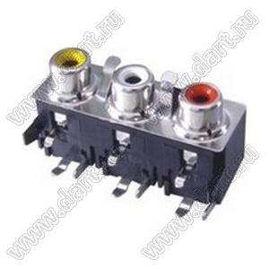 Каталог > Электронные компоненты, радиодетали > Разъёмы (соединители, переходники) > Разъемы аудио-видео > Разъемы RCA («тюльпан») > гнезда RCA > Блоки по три гнезда серии RCA "тюльпан" > RCA-304D-PD