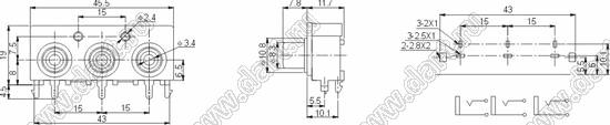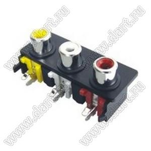 Каталог > Электронные компоненты, радиодетали > Разъёмы (соединители, переходники) > Разъемы аудио-видео > Разъемы RCA («тюльпан») > гнезда RCA > Блоки по три гнезда серии RCA "тюльпан" > RCA-305