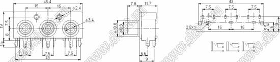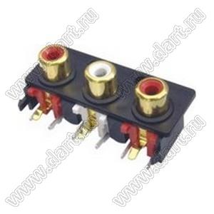 Каталог > Электронные компоненты, радиодетали > Разъёмы (соединители, переходники) > Разъемы аудио-видео > Разъемы RCA («тюльпан») > гнезда RCA > Блоки по три гнезда серии RCA "тюльпан" > RCA-305D
