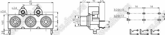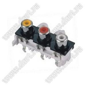 Каталог > Электронные компоненты, радиодетали > Разъёмы (соединители, переходники) > Разъемы аудио-видео > Разъемы RCA («тюльпан») > гнезда RCA > Блоки по три гнезда серии RCA "тюльпан" > RCA-310B
