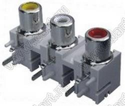 Каталог > Электронные компоненты, радиодетали > Разъёмы (соединители, переходники) > Разъемы аудио-видео > Разъемы RCA («тюльпан») > гнезда RCA > Блоки по три гнезда серии RCA "тюльпан" > RCA-312