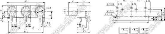 Каталог > Электронные компоненты, радиодетали > Разъёмы (соединители, переходники) > Разъемы аудио-видео > Разъемы RCA («тюльпан») > гнезда RCA > Блоки по три гнезда серии RCA "тюльпан" > RCA-312D