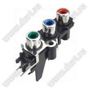 Каталог > Электронные компоненты, радиодетали > Разъёмы (соединители, переходники) > Разъемы аудио-видео > Разъемы RCA («тюльпан») > гнезда RCA > Блоки по три гнезда серии RCA "тюльпан" > RCA-313B