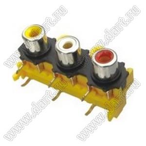 Каталог > Электронные компоненты, радиодетали > Разъёмы (соединители, переходники) > Разъемы аудио-видео > Разъемы RCA («тюльпан») > гнезда RCA > Блоки по три гнезда серии RCA "тюльпан" > RCA-314